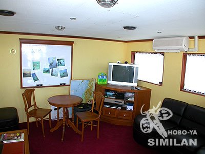 船体は大きく、ゆったりとしたスペースを確保。姉妹船のソンブーン4とほぼ同じレイアウトです。大きな船なので安定感があり揺れも少ないので、ダイビングクルーズが初めての方や、船酔いが心配な方でも、安心して乗船頂けます。船室は全室エアコン付きのツインタイプ。ゆったりとしたスペースを確保しています。トイレ・シャワールームは共同となりますが、6室ありますので十分に快適です。ビュッフェスタイルの食事も、ホテルさながら。大変好評です。