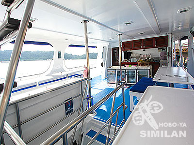マンタクイーン1は、全長27m、横幅5mの中型のクルーズボート。船足が早く、小回りが利くので、エントリー/エキジット時のフォローも抜群です。船内は、シンプルで使いやすく、清潔で快適なボートです。客室は全3タイプ、エンスイートダブル、ツイン、ノンエンスイートからなりご希望に合わせてお部屋をお選び頂けます(ノンエンスイート以外、トイレ・シャワールーム完備)。一般的なダイビング設備に加え、ナイトロックスタンク充填設備も完備しています。