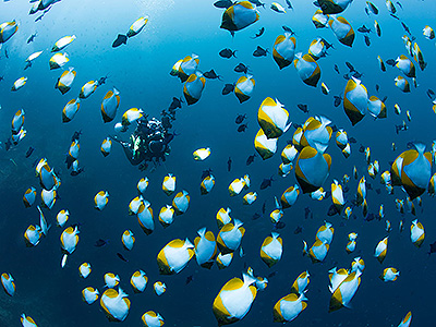バンダ諸島海域は、マクロの宝庫と呼ばれるアンボンからスタート。クルーズ乗船日は、午後出港しアンボン周辺のダイブサイトでチェックダイブを行います。日本ではなかなかお目にかかることが少ないボロカサゴも多色でバリエーション豊富。ミミックオクトパスや珍しい甲殻類たちにチェックダイブからお目にかかる機会があります。夜の間にバンダ諸島の最北端の島「スアンギ島」を目指します。島周辺のリーフは、手付かずの珊瑚礁やソフトコーラルが広がり、フエダイやフュージリアなどの群れや、通常よりもひとまわり大きなカメやサメと遭遇できます。3、4日目は、ハンマーヘッドシャークを狙いパヌニー号ならではのシークレットポイントで潜り倒します。クルーズ後半は、バンダ諸島の首都バンダネイラ島周辺でダイビング。周辺には、カラフルなソフトコーラルが張り巡らされた岩壁がある「ラン島」、サンセットの時間帯になると現れるマンダリンフィッシュ(ニシキテグリ)の産卵シーンが観察できるポイントもあります。大物、群れ、マクロから地形までどれをとっても楽しめること間違いなしのプランです。クルーズ中、バンダネイラ島に上陸する時間もあります。