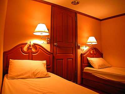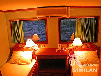 船体は大きく、ゆったりとしたスペースを確保。姉妹船のソンブーン4とほぼ同じレイアウトです。大きな船なので安定感があり揺れも少ないので、クルーズが初めての方や、船酔いが心配な方でも、安心して乗船頂けます。船室は全室エアコン付きのツインタイプ。ゆったりとしたスペースを確保しています。トイレ・シャワールームは共同となりますが、6室ありますので十分に快適です。ビュッフェスタイルの食事も、ホテルさながら。大変好評です。