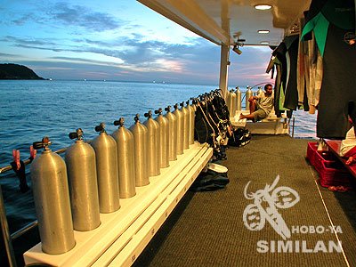 ソンブーン4は、2004年に就航した、定員28名の大型クルーズボート。ソンブーン3の姉妹船です。タプラム港からシミラン諸島までは、スピードボートを利用で約80分。時間を節約すると共に、週5日乗船、下船が可能になりました。シミラン諸島をを起点に、「コ・ボン」、「コ・タチャイ」、「リチェリューロック」まで代表的なクルーズコースを、最短2泊3日で巡ることができます。日程の短い方には、まさにうってつけのボートです。