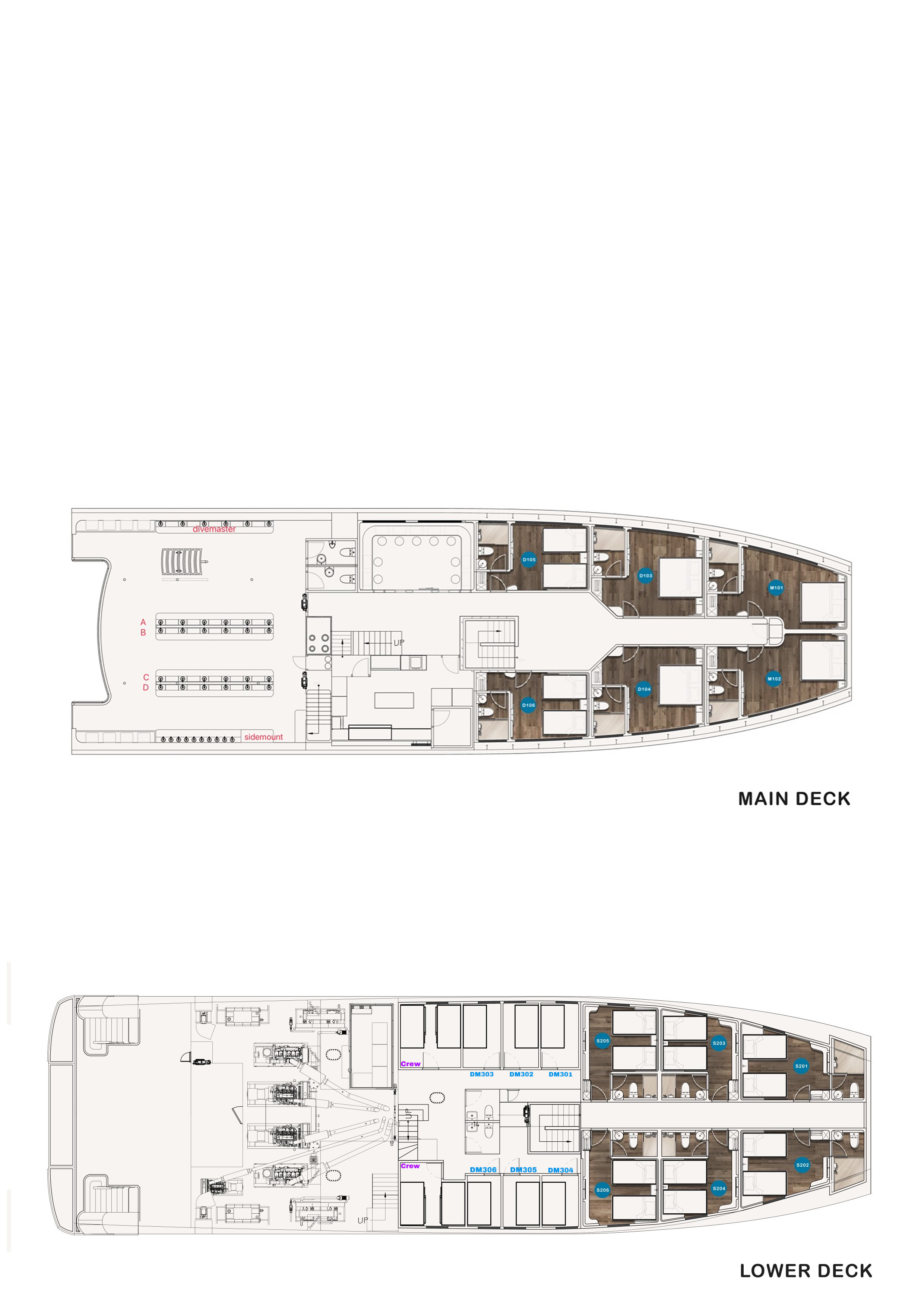 ※デラックスは、メインデッキにあり、ダブルまたはツインベッドになります。