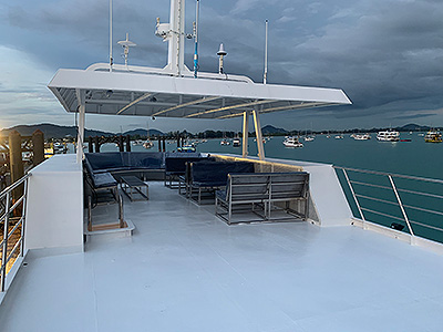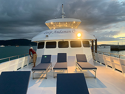 A 4-Day 4-Night Dive safari to the Similan Islands - Koh Bon - Koh Tachai - Richelieu Rock on a luxury liveaboard MV Deep Andaman Queen. The comfortable en-suite cabins are suitable for couples and ladies. The relaxtion area on the rooftop, with comfortable sofas and a sunshade, is the perfect place to enjoy the sea breeze during your surface interval. The staff and boat crew are friendly and the meals wonderful.