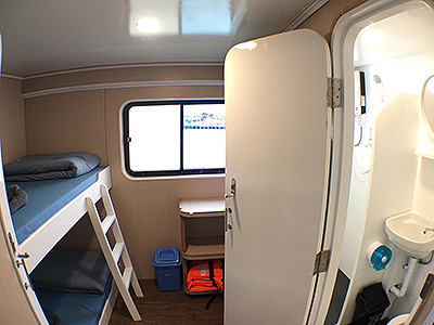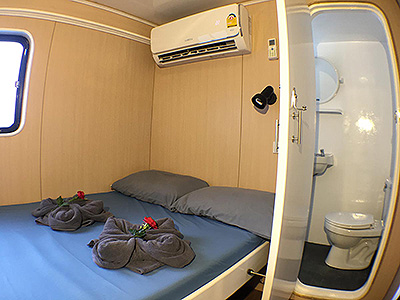 *Cabins are share basis. *There might be cases need to share the cabin with different gender. *Double En-suite has one double sized bed and equipped a bathroom inside of cabin.